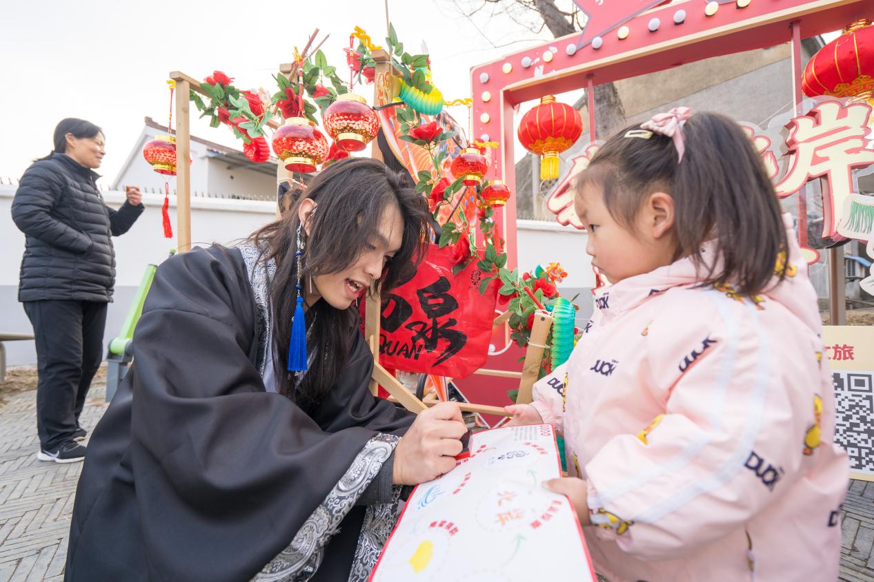 上午的迎春大舞台上,舞龙点睛、古风情景剧《昭明重现》等环节点燃新春热情;下午的氛围小舞台上,古典乐器联奏《茉莉花》等金陵名曲与现代乐队演出交替进行,兼具江南雅韵与潮流活力。“和孩子一起参与投壶游戏,投中后盖了‘智慧福’印章,这种互动比单纯看表演有意思多了!”本地市民尹康带着女儿完成四大固定场景打卡,手里的巡游地图已集齐大半福章。