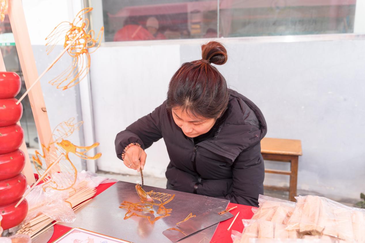 非遗体验与美食盛宴让年味触手可及。老街市集上,剪纸、糖画、捏面人、吹糖人等老手艺吸引孩子们驻足;汤泉特色马齿苋烤肠搭配黑莓果汁,萝卜圆子、花生糖等传统小吃唤起童年记忆,48家创意摊位与5家康养主题摊位串联起“逛吃购”全流程。“这些老手艺不是躺在博物馆里,而是热气腾腾地‘活’在眼前。”剪纸传承人王师傅的摊位前人头攒动。