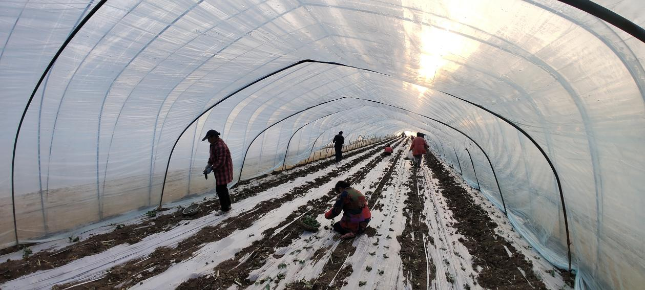 大棚西蓝花在紧张定植,小拱棚种植的农户们也早已行动起来。西蓝花大道两侧,大型旋耕机在田间轰鸣往复,将土地耙得细碎平整;紧接着,开沟、铺设滴灌带、覆盖地膜……一系列标准化工序井然有序,为接下来的移栽做好准备。