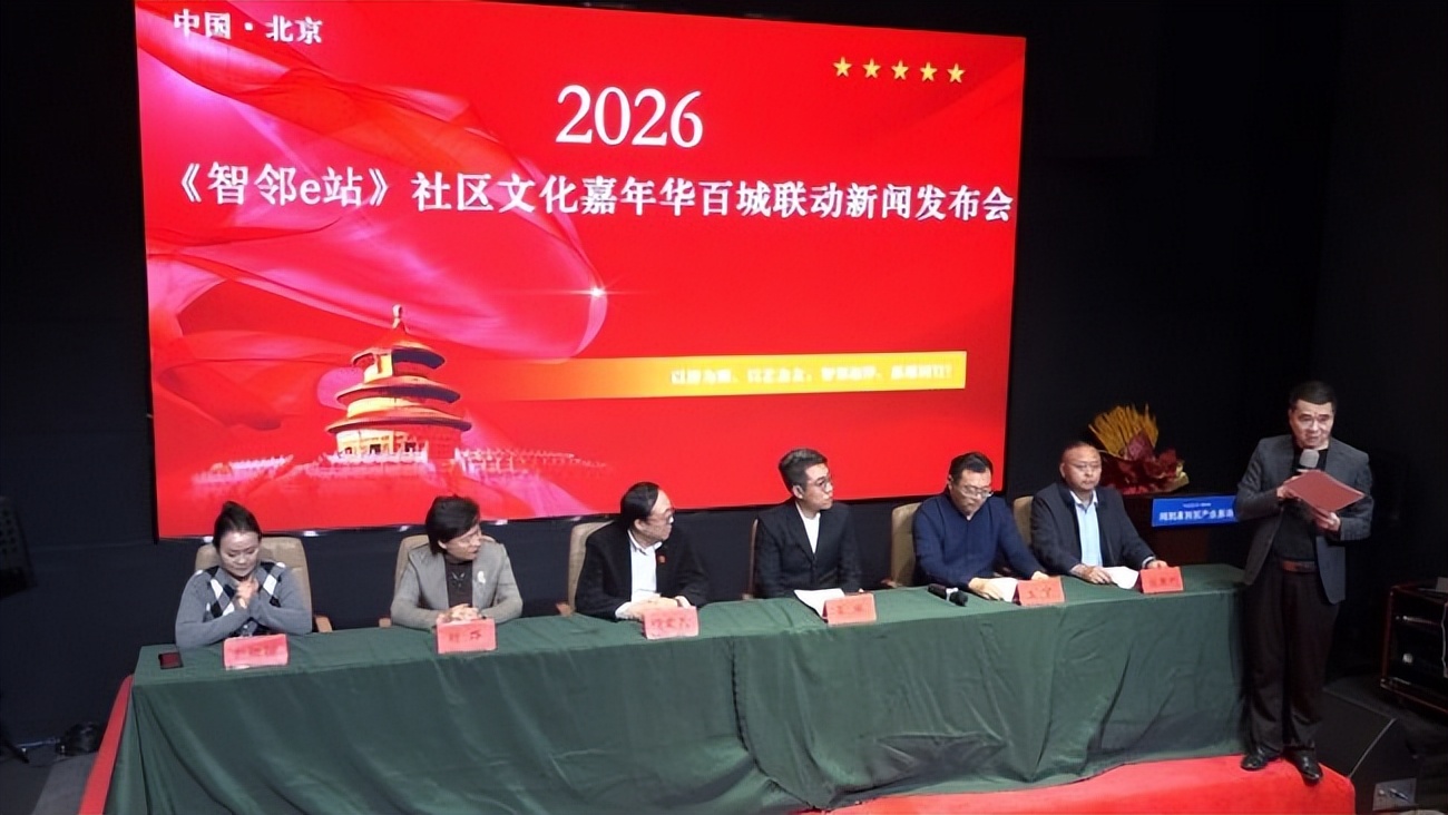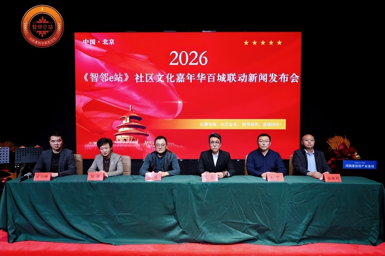 2026年2月2日,以“智慧邻里,共享美好”为主题的2026《智邻e站》社区文化嘉年华百城联动新闻发布会在北京市朝阳区鸿鹄巢创投产业基地召开。本次活动由2026《智邻e站》社区文化嘉年华百城联动组委会主办、北京智胜远景科技有限公司承办,本次活动汇聚了政企学界代表、文化艺术名家、健康领域专家等众多嘉宾,共同见证数智社区文化生态圈的构建启航,探讨社区治理创新与邻里共融的全新路径。