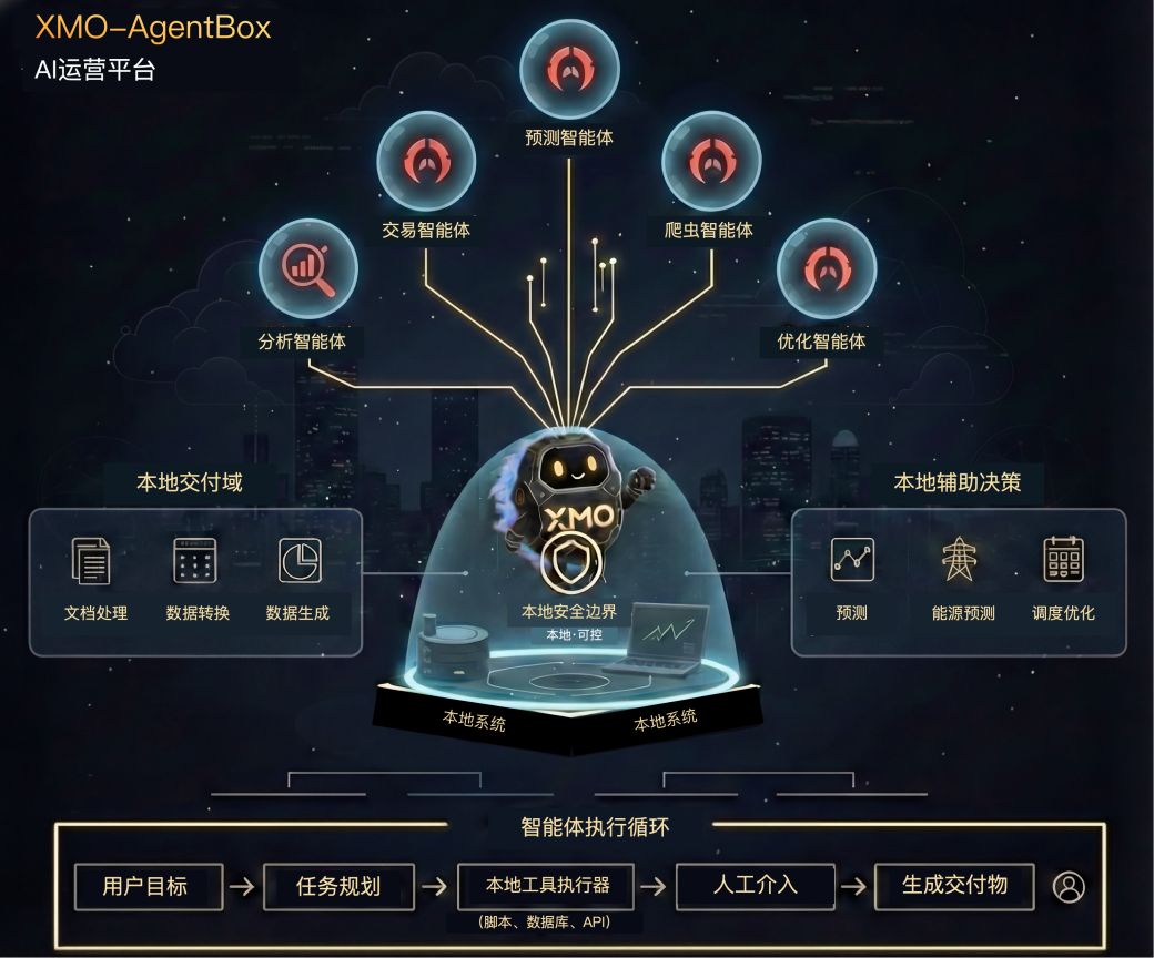 在相关探索中,一些企业开始尝试通过“本地部署、边界清晰、可干预、可追溯”的技术路径,为智能体落地提供更稳定的工程化支撑。曦谋决策(杭州)智能科技有限责任公司成立于2023年,长期聚焦电力市场相关的预测与决策、气象预测与优化求解等方向,并持续推进大模型在行业场景中的应用探索。在此基础上,公司推出本地智能体工具 XMO-AgentBox,采用桌面级部署方式,使智能体围绕用户目标完成任务规划,并在用户本地环境中完成具体操作与工具调用,尽可能减少对既有业务系统和数据流转方式的改造成本。