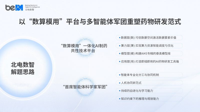 生物制造作为未来产业的重要组成部分,其发展离不开先进技术的支撑。AI制药作为生物制造的关键应用场景,长期面临“双十困境”,即新药研发周期长、投入高,且AI尚未完全成为普适的先进生产力。北电数智深刻认识到这一问题的根源在于整个研发体系在数据、工具与协同机制上的系统性失衡。
