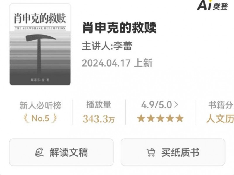学会与生活的缺憾和解后,更需要守住内心的希望,在困境中找到前行的力量,《肖申克的救赎》便将自渡的核心力量娓娓道来。主人公安迪在肖申克的绝境里,用二十年的坚守敲开自由的大门,这份藏在困境中的希望与执着,完美诠释了“自渡才是最好的解药”的深意。李蕾精准拆解故事里的力量内核,将这份永不言弃的信念传递给每一位听者,让你明白:内心的坚定与执着,才是打破一切困境的钥匙。
