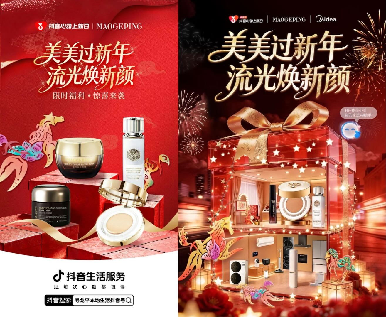 毛戈平品牌于1月18日至31日期间,围绕“美美过新年 流光焕新颜”主题,在抖音平台展开了一系列整合营销活动。项目通过打造两场不同场景的内容型直播,并联动智能家居品牌,共同呈现“现代东方美学生活”理念;同时提供线上专享、线下门店同享的多元礼遇,并借助从专业评测到探店体验的立体化达人内容,多维度建立产品信任感,有效引导用户从线上关注走向线下亲身体验。