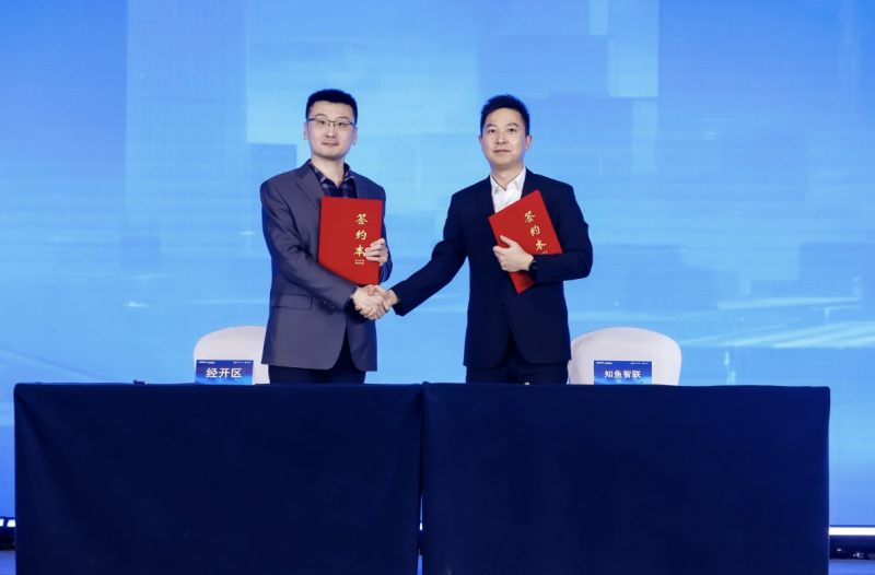 随后,吕昊作为经开区管委会代表,与北京电子城高科技集团股份有限公司首席数据官、知鱼智联科技股份有限公司总经理刘小健进行了知鱼智联与北京经开区合作签约仪式。