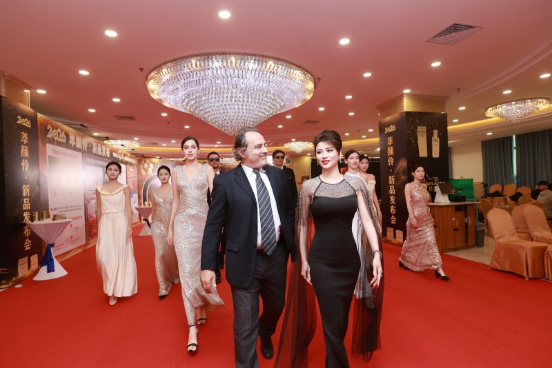 发布会现场星光熠熠、大咖云集,多方权威力量的站台,为萃颜伶的科研实力与产品品质提供了强力佐证。花都个私协会长陆世强、狮岭镇书记李长由等政府及行业协会领导莅临现场,见证品牌发展里程碑;法国化妆品协会副会长Jack博士作为30余年行业从业者,高度认可萃颜伶在成分活性与肤质适配性上的突破,盛赞品牌“传承东方温和理念,融合国际前沿科研,为全球抗衰市场注入新活力”。
