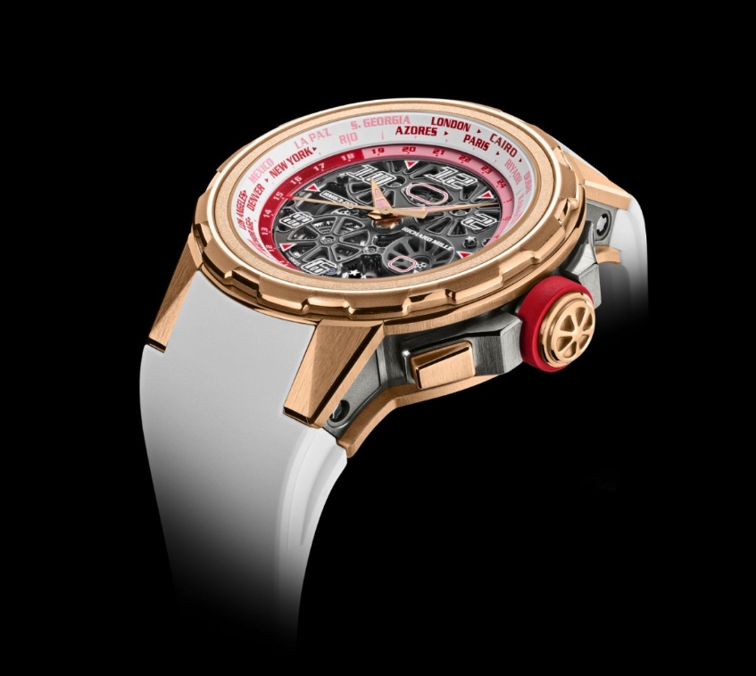 以极简之形,载复杂之能,RM 63-02世界时自动上链腕表,是RICHARD MILLE对“功能与美学共生”的极致诠释,专为步履不停的全球行者而生,将寰宇时序凝于方寸腕间,藏尽远行与时光的诗意。腕表打破传统世界时腕表的繁琐调校逻辑,独创旋转表圈调校机制,无需复杂操作,轻旋表圈便可瞬间切换全球24个时区的精准时间,每一次转动,都是与世界的温柔对话。表盘之上,玫瑰粉与勃艮第红双色渐变晕染,细腻肌理如日暮霞光,清晰区分昼夜时段,既兼具视觉美感,又让时区读取一目了然,极简设计中暗藏巧思,褪去冗余装饰,尽显低调奢华的格调。
