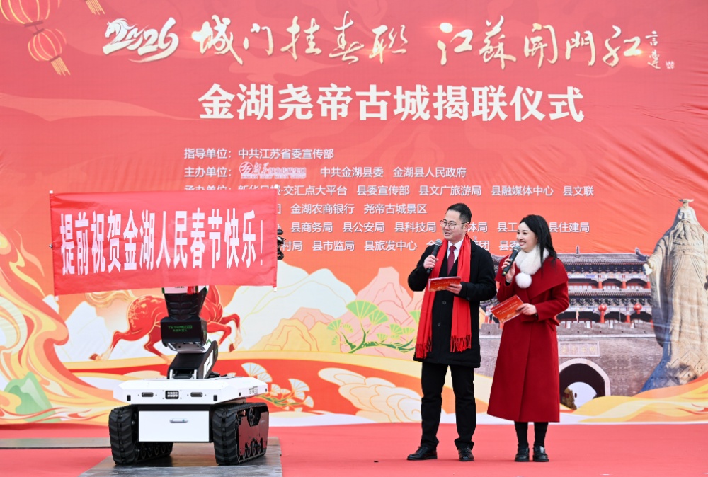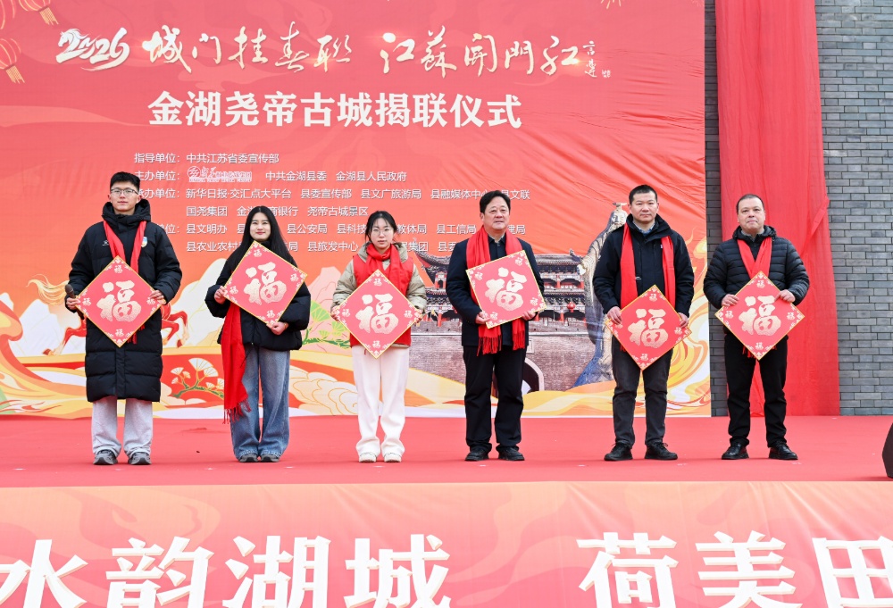 新华日报·交汇点讯(记者华诚 高波 董双)银蛇辞旧岁,骏马报新春。2月7日清晨,金湖寒风料峭,却掩不住满城涌动的喜庆与热情。市民纷纷驻足翘首,手机镜头一齐聚焦尧帝古城那一抹鲜亮的中国红,共同迎接“城门挂春联 江苏开门红”淮安地区活动的盛大启幕。