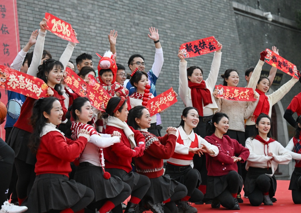 广场舞台的惠民文艺展演,将现场欢乐推向新的高潮。音乐快板节奏明快,唱出城乡新貌;传统舞蹈衣袂飘飘,舞动水乡的温婉灵动;黄梅戏选段一开嗓,熟悉的乡音便引得台下观众轻声跟唱。大鼓《赛马》压轴登场,鼓点如万马奔腾、铿锵激越,每一声都敲在人心上,为这场新春文化盛宴画上了一个气势磅礴的句号。