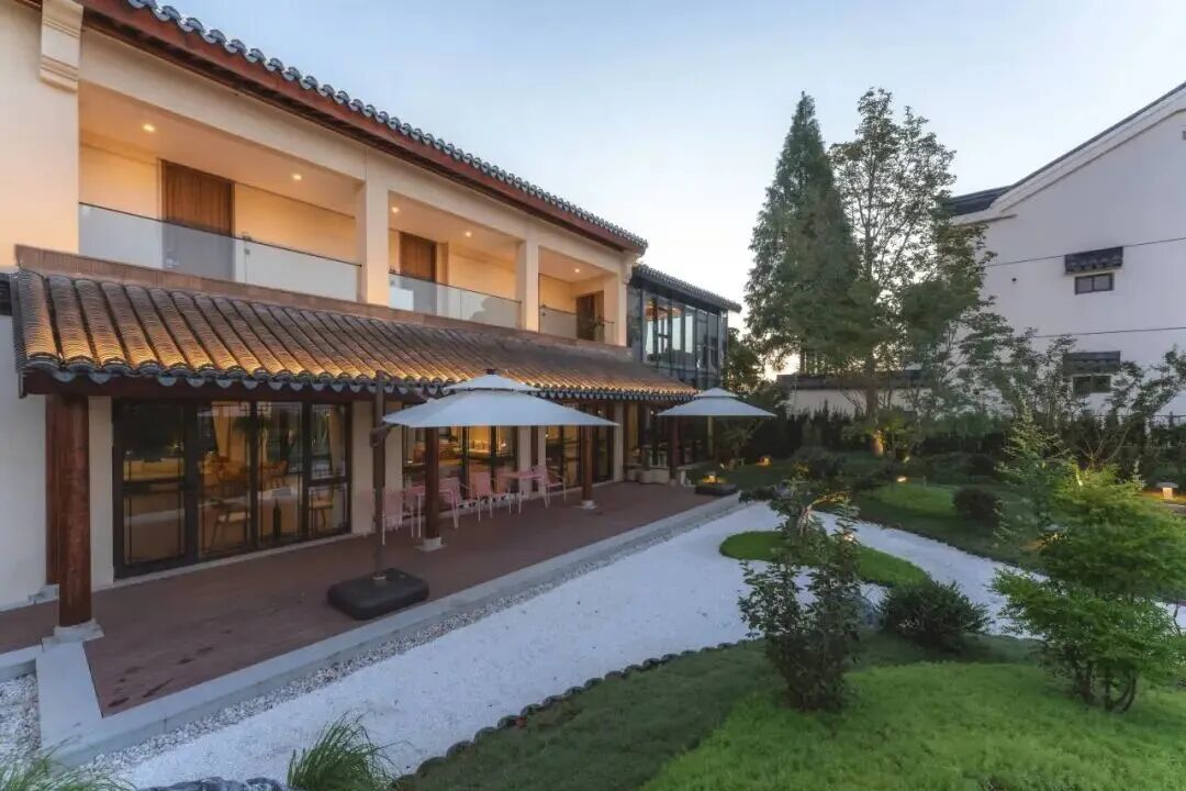花筑奢明园民宿位于苏州市吴江区同里镇,院落中植有一株树龄逾百年的玉兰树,民宿巧妙地将传统园林的造景艺术融入,叠山理水、花木扶疏,移步换景间尽显江南园林“咫尺之内再造乾坤”的精妙,堪称一座“可以入住的苏式园林”。