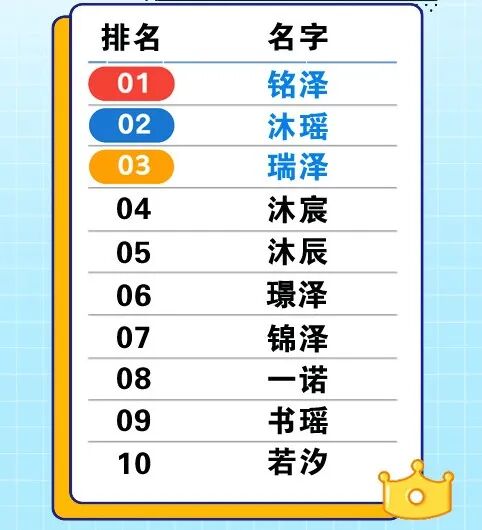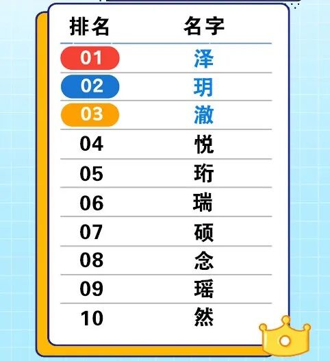 新生儿名字单字前十名↓