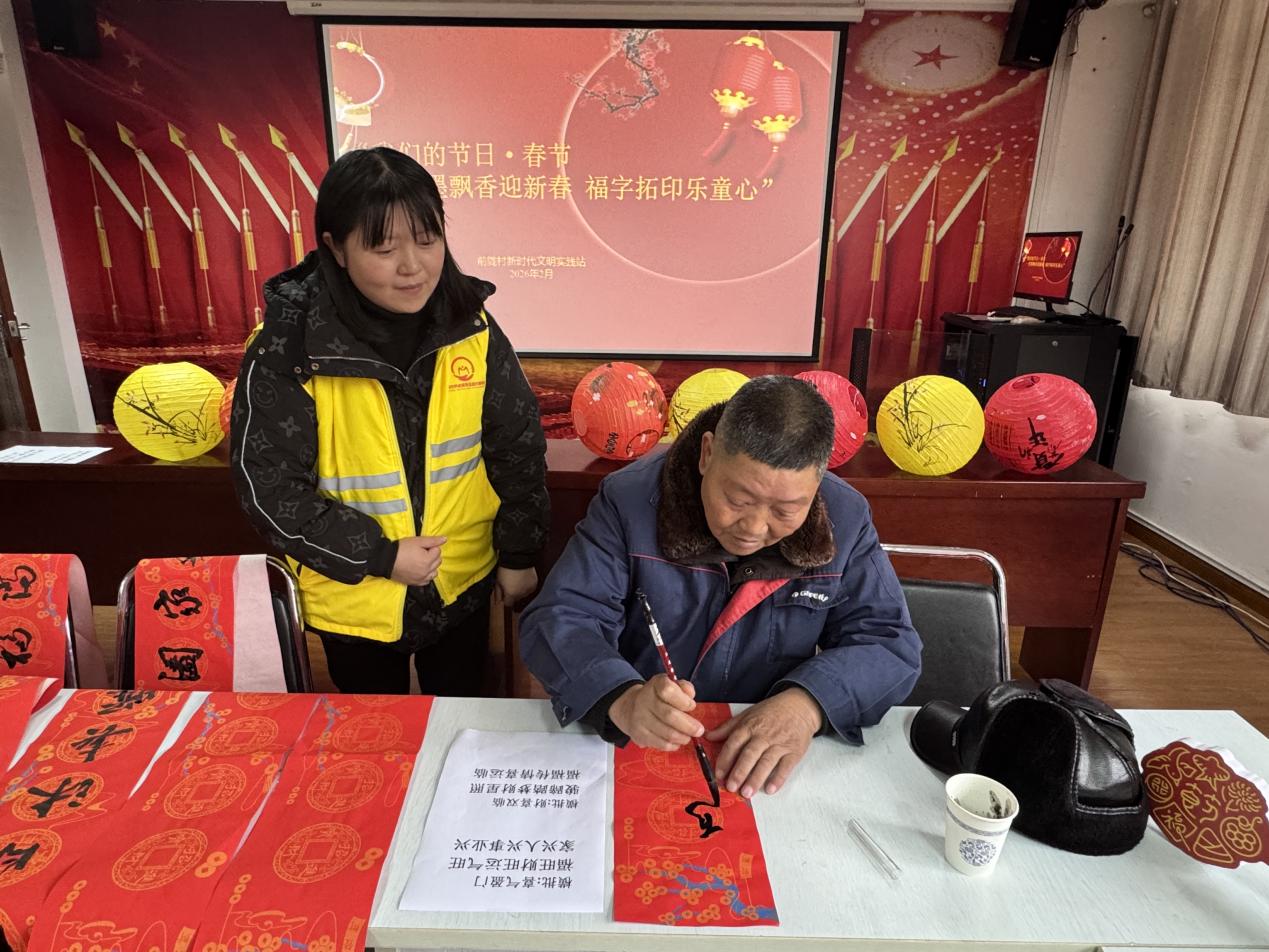 春节前夕,高淳区固城街道前陇村新时代文明实践站联合“淳幸福”居家养老服务中心,共同举办“我们的节日·春节”主题活动。活动以“笔墨飘香迎新春 福字拓印乐童心”为主线,巧妙融合民俗体验、国防教育与敬老爱老,为乡村增添了浓厚的文化年味与家国情怀。