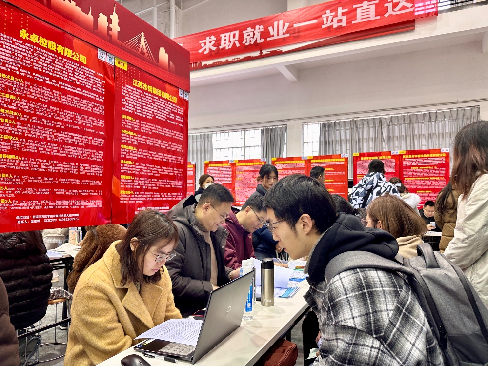 更多地方直接将优质岗位送到寒假返乡的毕业生身边。在2月8日举行的张家港市2026年春季高校毕业生双选会上,200多家企业提供的1万多个岗位吸引了众多毕业生现场寻找机会。常州工业职业技术学院工业机器人专业2026届毕业生孙泽同一个早上投了10份简历。“有两家待遇不错,跟HR聊得也很好,感觉很有希望。”孙泽同表示,家乡企业用工规范,父母也希望自己能回老家工作,“如果成功应聘就是最好的春节礼物了”。