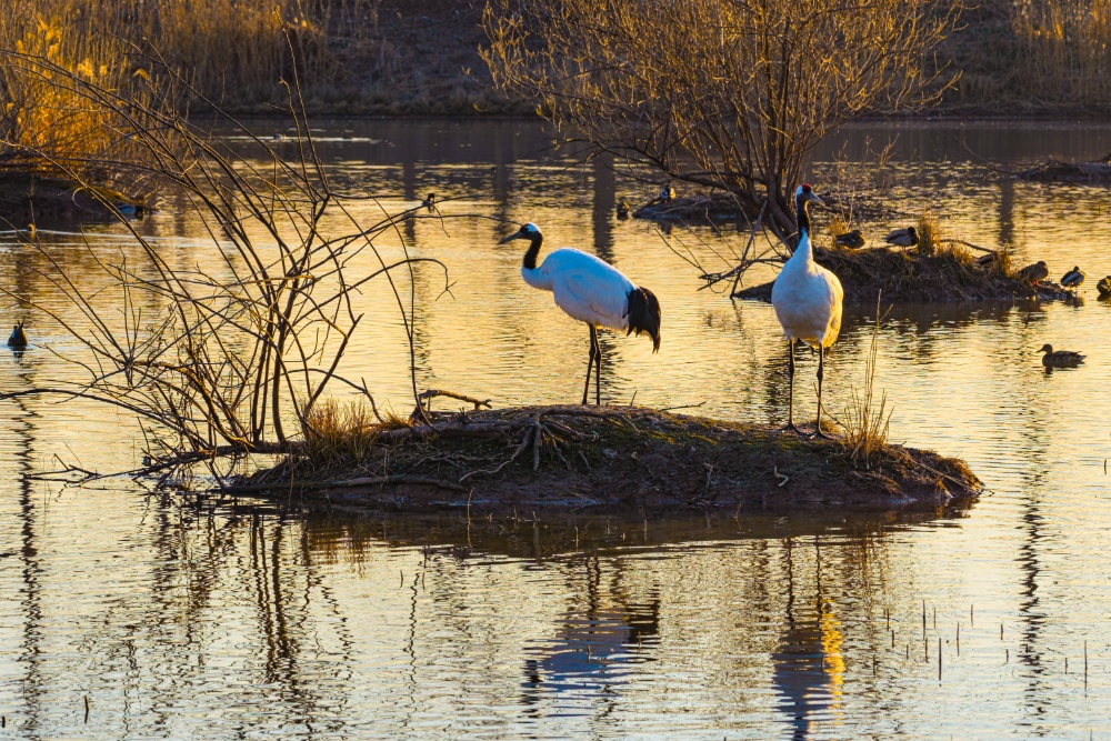 丹顶鹤(学名Grus japonensis),俗称“仙鹤”,是鹤形目鹤科鹤属的大型涉禽,也是东亚特有的珍稀鸟类,被列为国家一级重点保护野生动物,同时入选《濒危野生动植物种国际贸易公约》附录Ⅰ,全球野生种群数量仅约3822只,生存状态为易危。作为典型的湿地指示物种,丹顶鹤对栖息环境有着极高要求,主要栖息于开阔平原、沼泽、湖泊、海边滩涂、芦苇沼泽及河岸湿地等区域,这类生境不仅能为其提供充足的鱼虾、水生昆虫、软体动物等食物,还能满足其筑巢、休憩的需求,是湿地生态系统健康的“晴雨表”。