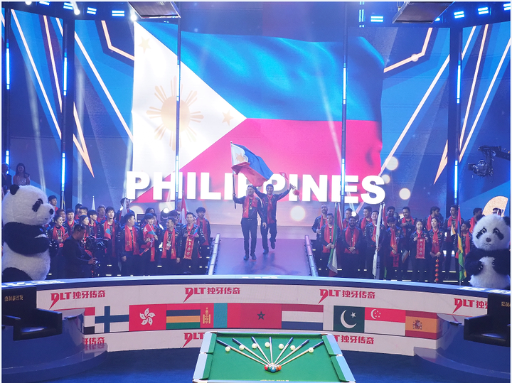 随后的运动员入场仪式成为全场焦点。来自全球五大洲的28个国家的台球精英们踏浪而来,在赛场之上组成一道道流动的风景线,蓝宝石赛场国旗如云,展现出中式九球运动日益提升的国际影响力。