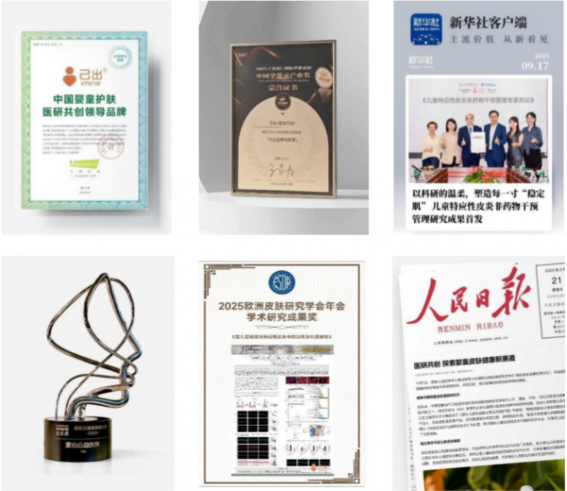 己出获得30+皮肤学专家认证的《儿童特应性皮炎非药物干预管理专家共识》支持,为产品配方与护理理念提供专业理论支撑。自上市以来,产品已进入全国80家三甲医院用于临床,获得247家儿童保健所推荐,先后斩获CBME杰出品牌创新奖、HWB屈臣氏健康美丽大赏-爱心公益伙伴等荣誉,多次获得人民日报、新华社等权威媒体报道,专业度与口碑获得广泛认可。