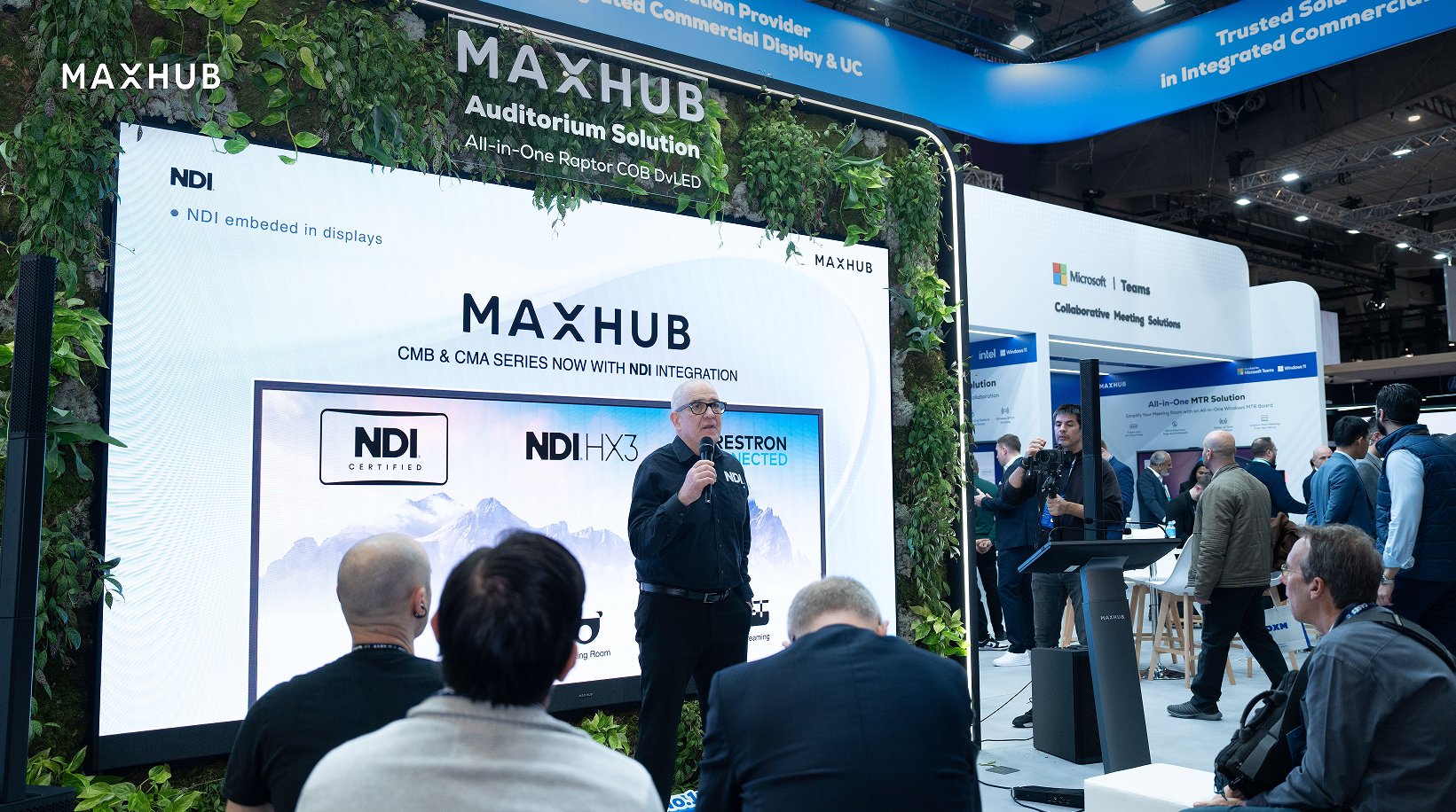 展会首日,MAXHUB在新品发布会上重点展示了围绕“混合会议、智能显示、统一管理”的重大突破,展现其技术创新的系统化布局。其中,MAXHUB与全球协作引领者微软深度合作,打造全系列微软认证产品矩阵,并联合启动“Co-Creat 100”项目,计划为全球千行百业的龙头企业合作,免费打造数字化协作新标杆。此外,国际顶尖技术厂商NDI代表出席发布会,共同发布创新产品。
