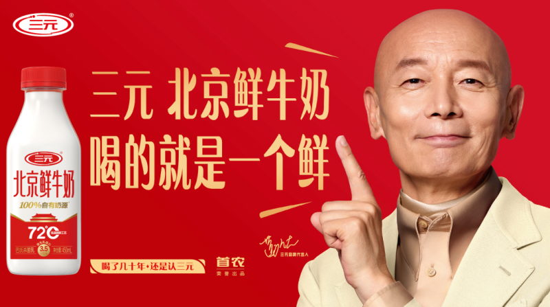 图:三元食品品牌代言人葛优x三元北京鲜牛奶
