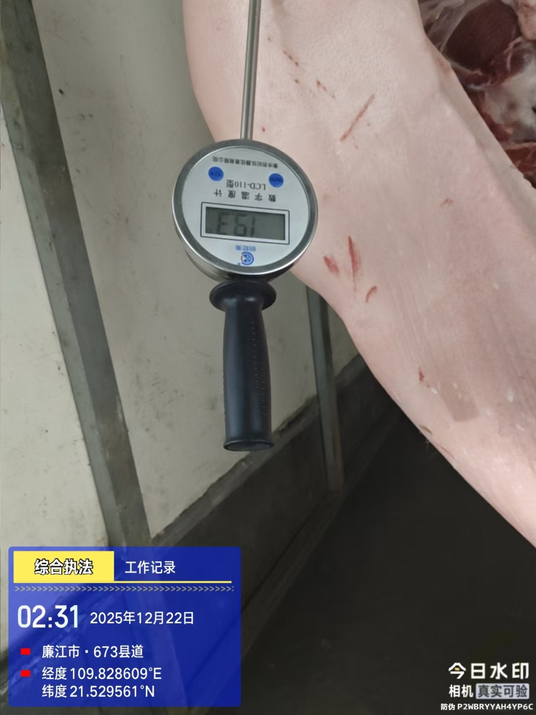 车板镇政府联合市场监管执法检查生猪产品肉品载测温现场