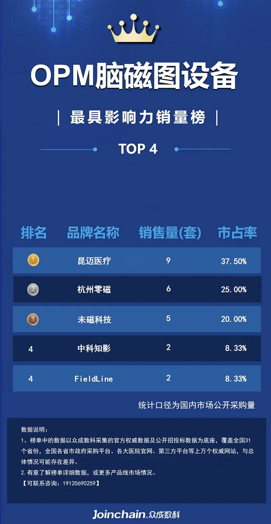 图 1 OPM脑磁图设备最具影响力销量榜(按照公开采购量)