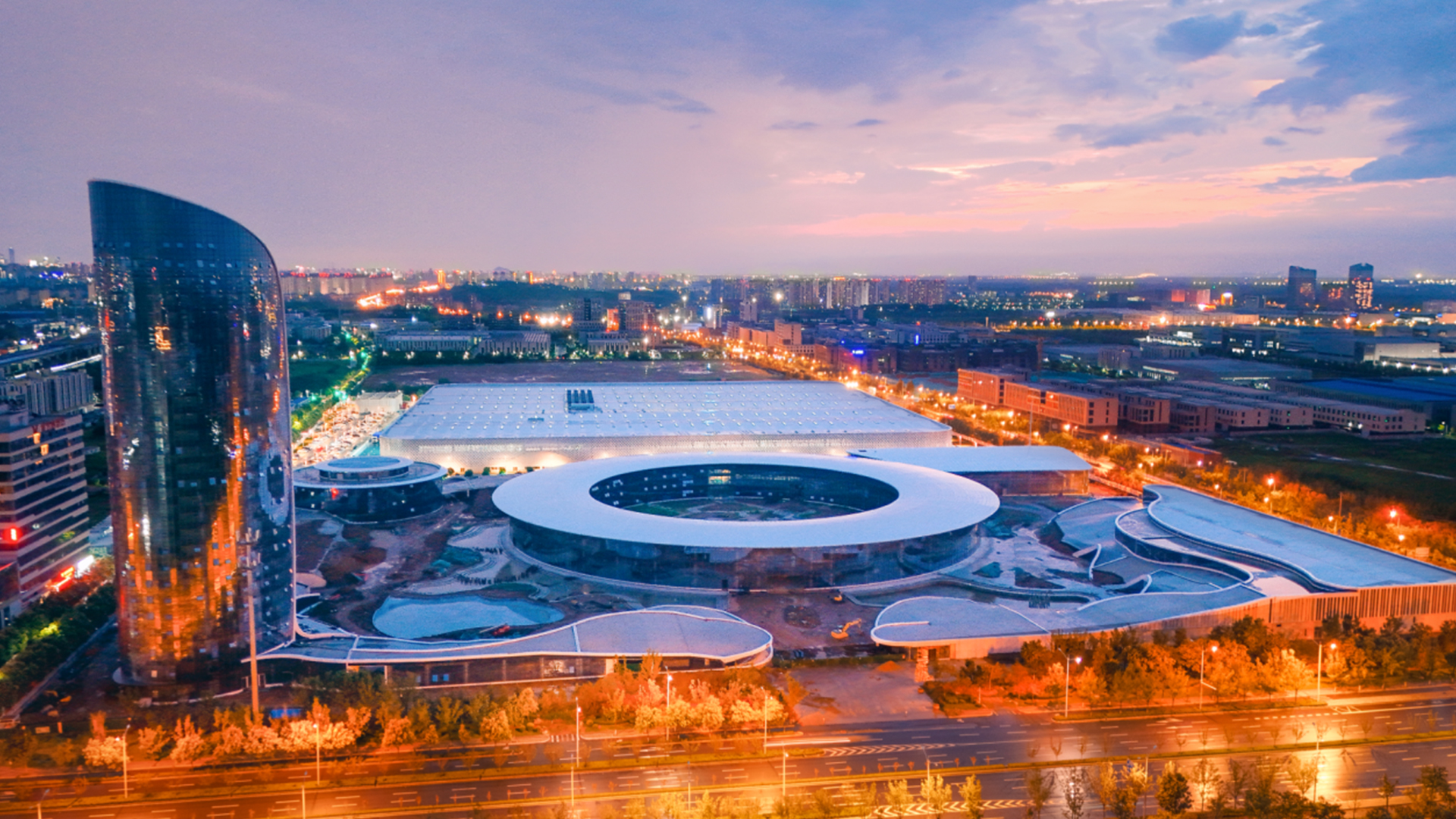 园区以“山水入梦,玉境生辉”为理念,融合东方美学与自然哲学,构建出一方一圆、一动一静的和谐格局。建筑外观摒弃传统工业的冷硬线条,代以流畅舒展的形态与大面积玻璃幕墙,融入9.7万平方米园林景观。
