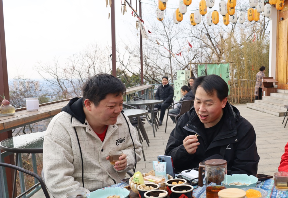 在山南头文化艺术村不远处的安阳山,上山的步道早已修缮一新。清晨,沿着步道,徒步登山,在山林自由呼吸。爬到半山腰,停步小憩,喝上一杯清茶,看着山脚下的万亩桃园,几位网络达人忍不住开启直播,第一时间与粉丝分享感受。“这是我第一次来到阳山,真切地感受到了这里的温柔与热情。在安阳山半山腰的茶社小坐,迎着微风、细品香茗,身心都得到了彻底放松。”网络达人 “盐城王先生” 说。网络达人“大军要努力”感慨道:“一定要告诉更多人,在中国阳山有一座特别的山,这座由火山喷发形成的地质奇观,独特的土壤条件孕育出了享誉全国的阳山水蜜桃,味道绝对杠杠的!”