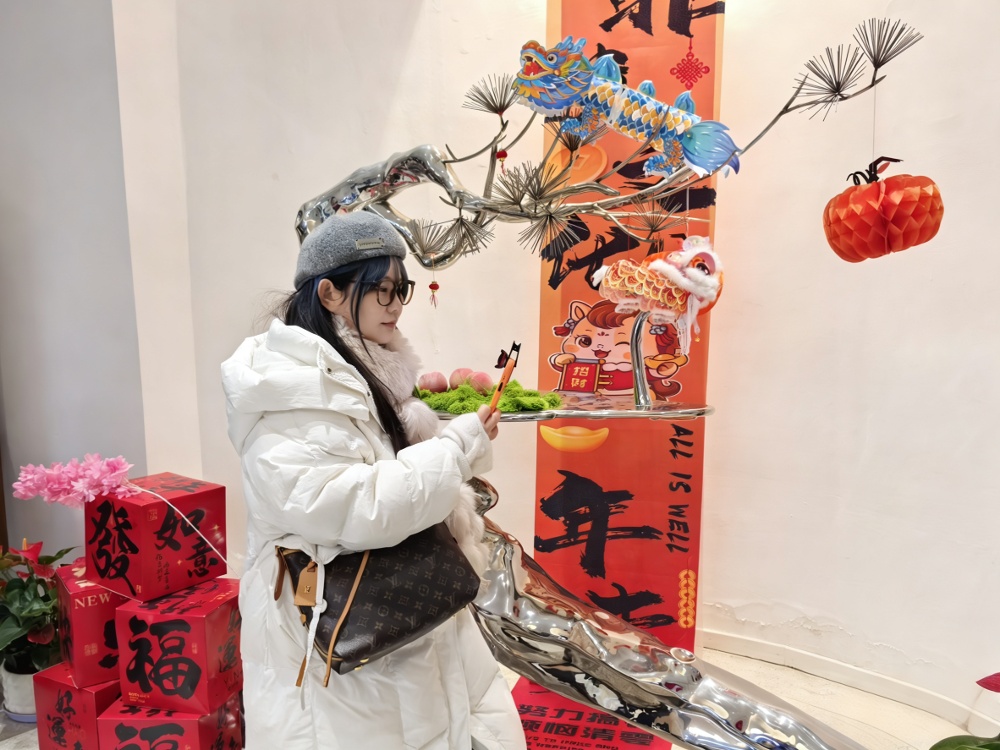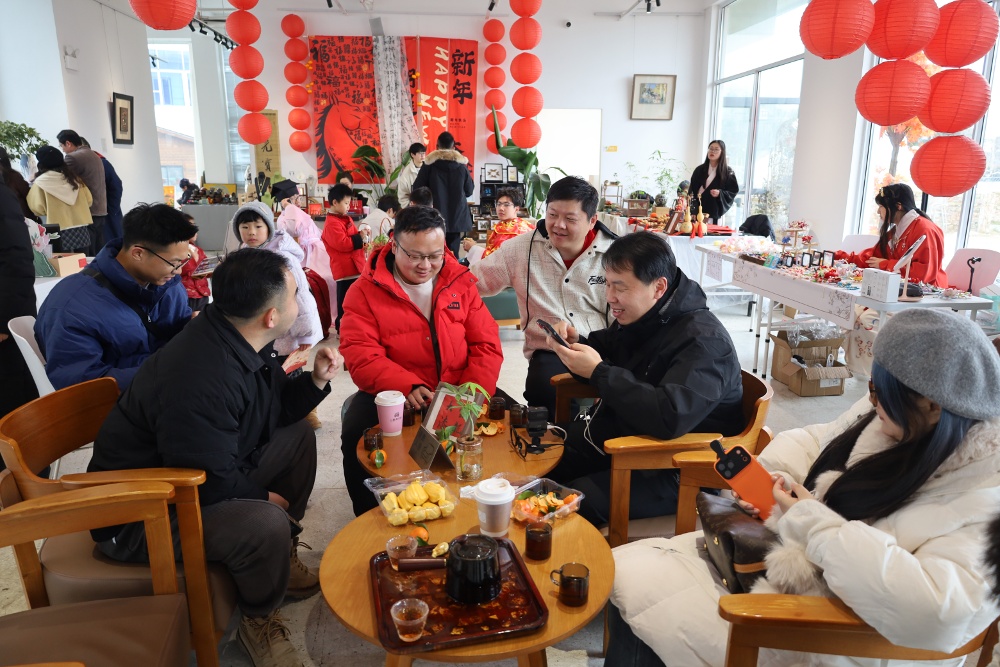 在村里的众象美术馆,一场“非遗年味集”同步开展,通过展览与体验课相结合的方式,让大家沉浸式感受传统雅事的独特魅力。坐在这里,品上一杯蜜桃口味的咖啡,赏着艺术馆里的艺术品,收获一份难得的宁静与惬意。在体验了传统非遗项目“打香篆”后,网络达人 “盐城王先生”开心地说:“这个体验项目很好,真的能让人静下心来感受当下,这份宁静实在难能可贵。”他忍不住向粉丝热情推荐:“欢迎朋友们来无锡阳山,感受这里的新春热闹与当地居民的务实热忱,尝一尝这里的特色美食。等到夏季蜜桃成熟时,再来品尝正宗的阳山水蜜桃。”