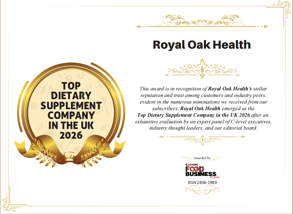 英国营养补充剂品牌 Royal Oak Health(皇家橡树健康)近日荣获行业媒体 Europe Food & Drink Review(《欧洲食品与饮料评论》)颁发的“2026年度英国最佳膳食补充剂公司”称号。该奖项旨在表彰在英国膳食补充剂行业中具备卓越声誉、产品品质与消费者信任度的领先品牌。