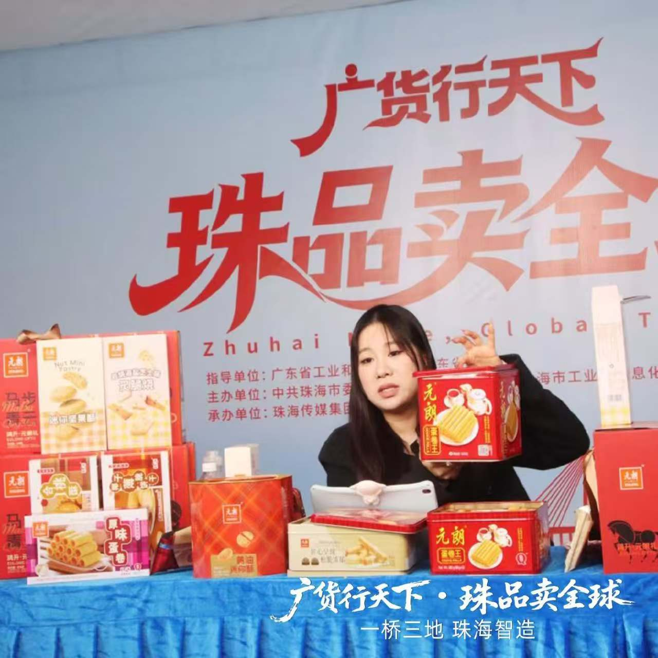 2 月 8 日,港珠澳大桥口岸的 “广货行天下 珠品卖全球” 活动现场,15 个直播间火热开播,元朗食品作为港澳优品企业代表重磅亮相,与格力电器、奔图电子等珠海智造企业同台,在大桥旁设置专属直播间与展销展位,成为现场极具粤港澳特色的广货名片,元朗食品总经理伍素萍出席了本次活动。