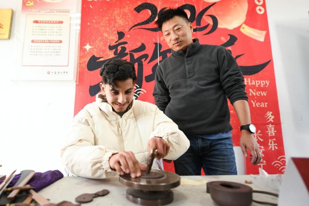 紫砂体验区里,老师介绍紫砂文化的历史底蕴,示范捏塑基本手法,留学生们发挥创意,制作迷你马年生肖摆件,指尖流转间解锁传统工艺的独特魅力。