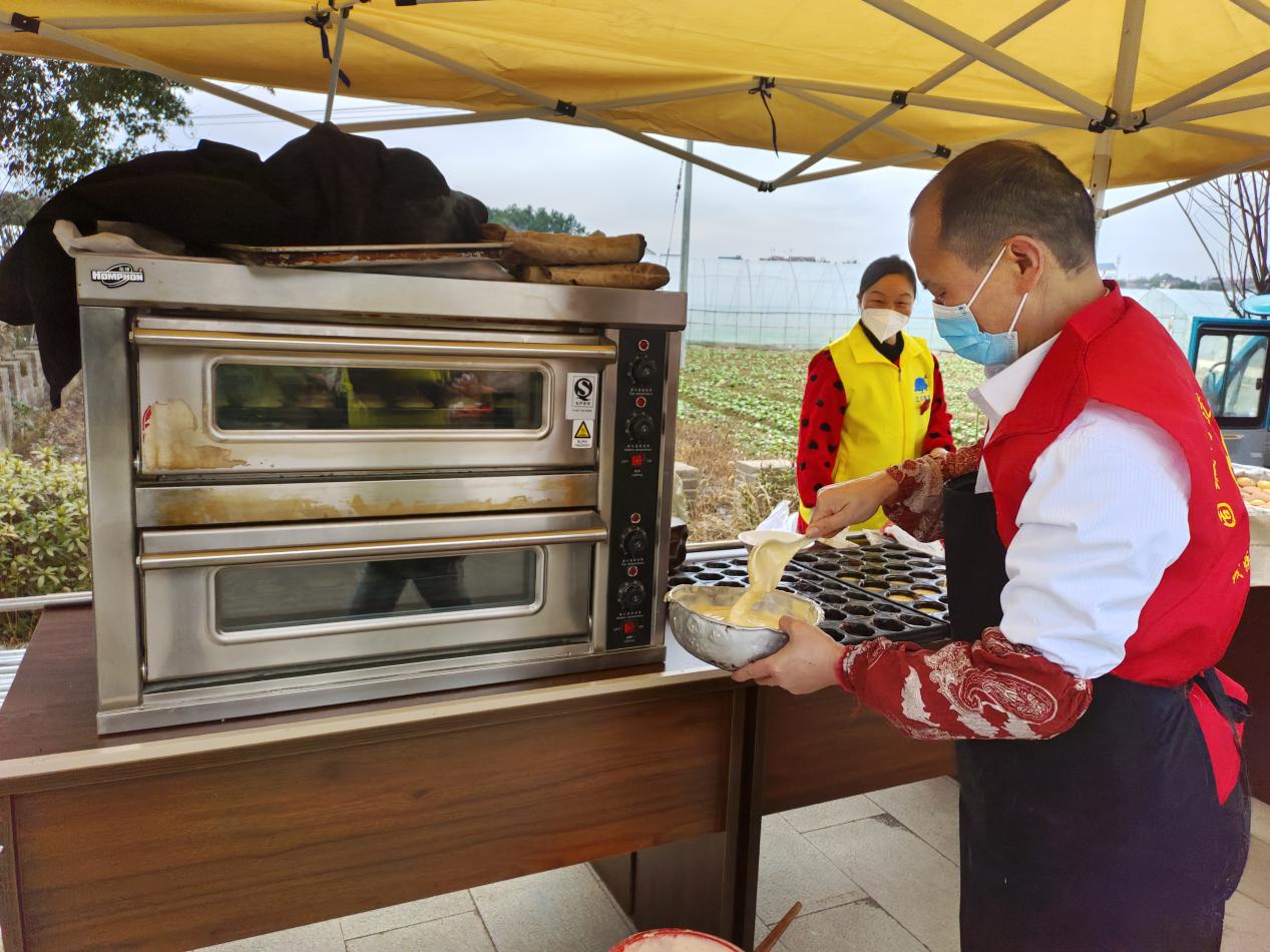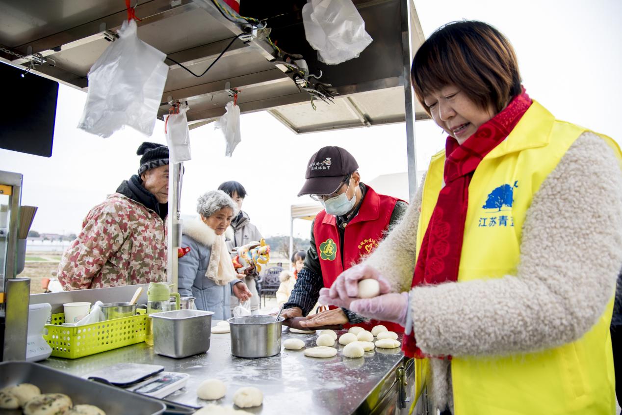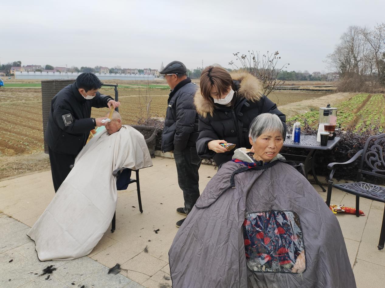 活动的另一大亮点,是贯穿始终的“爱心慰问与便民服务集市”。在温馨感人的“爱心妈妈”结对环节,妈妈们为困境儿童送上精心准备的新年礼物和深情拥抱,场面温暖至深。与此同时,各服务点位也忙碌而有序:高淳区中医院的医生们提供细致义诊,名尚理发的志愿者巧手焕发新颜,固城派出所民辅警进行普法宣传,农商行工作人员解答金融咨询,还有墨香四溢的福字拓印体验……江苏青蓝基地特别准备的暖心茶歇——热腾腾的烧饼与蛋糕,更是让这份关怀实实在在,暖胃又暖心。