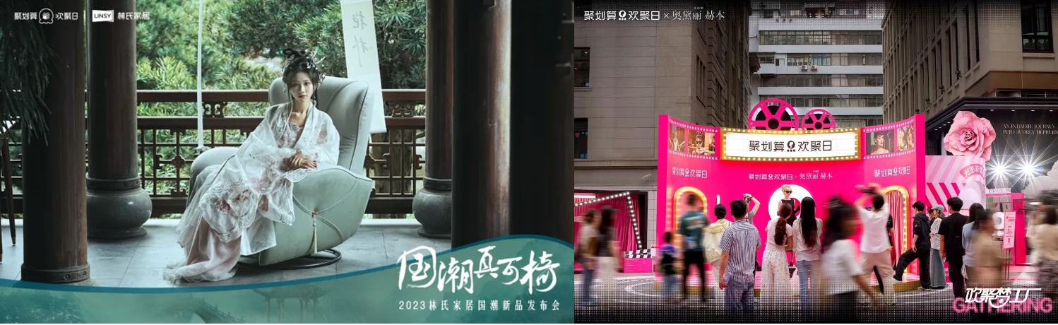 为了达到“助力品牌生意爆发,为用户提供高质价比好物”的目标,聚划算在策略选择、营销叙事上,同样践行着让平台-品牌-用户粉丝始终能够达成共赢的方式,从过去许多聚划算欢聚日与品牌和粉丝共创欢聚营销大事件可见一斑。例如,有科技头部品牌在新品上市之际与聚划算欢聚日联合举办线下openday、影展和欢乐游园会等热门活动;也有家居品牌瞄准国潮风潮与汉服文化热,利用欢聚日平台精准聚拢对传统文化感兴趣的用户圈层,在长沙橘子洲头举办“国潮”新品发布会盛事,将现代家居美学与传统国风元素相融合,让参与者沉浸式体验新国潮家居产品,在行业和消费者端广受好评。
