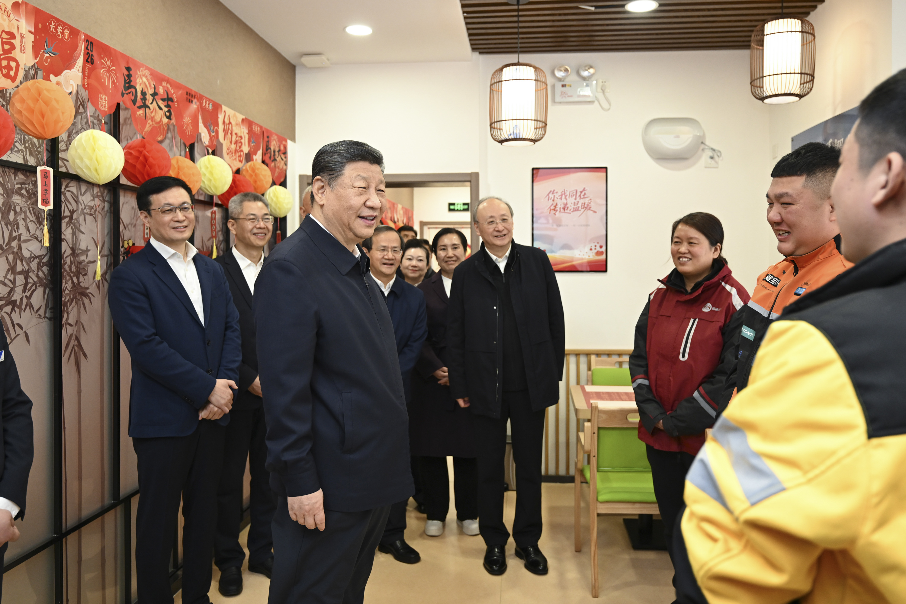 10日上午,习近平总书记来到北京市西城区新街口街道父母食堂考察。见到在这里休息的3名快递小哥,习近平关切询问他们跑快递多久了、工作累不累、收入怎么样、春节回不回家,为他们付出的辛劳和作出的贡献点赞。习近平说,你们满足千家万户需求,城市运转离不开你们,希望你们都能够生活得好、工作得好。习近平强调,各级党委和政府一定要关心新就业群体,为他们的生活、工作、学习提供好服务。