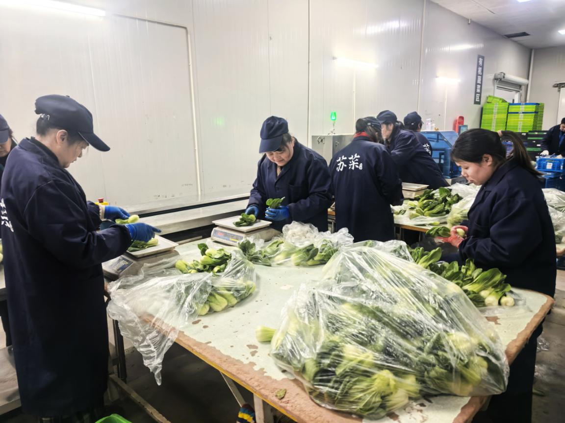 2月10日,记者在晶桥镇邰村普仁有机蔬菜基地看到,连片智能大棚错落有致、规模壮观,棚内鸡毛菜、杭白菜、上海青、菠菜等有机蔬菜青翠欲滴,村民们抢抓农时加紧采收。在3400平方米的恒温智能分拣中心,清洗、分拣、打包工序高效衔接,一辆辆冷链运输车整装待发,将新鲜蔬菜快速运往全国各地。