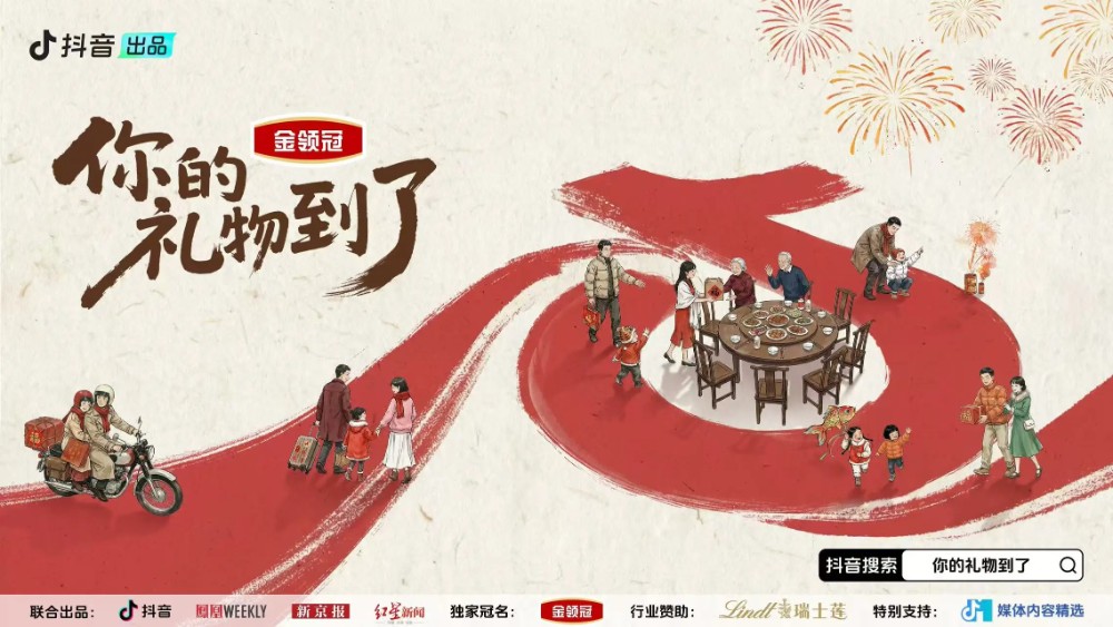 为了寻找我们内心的答案,由金领冠独家冠名,抖音联合凤凰周刊、新京报、红星新闻三家媒体共同推出的《你的礼物到了》春节人物纪录片,2月11日起即将暖心上线!通过9期10-15分钟的轻量化纪实内容,在兼顾深度与传播效率的同时,将那些被深藏的真挚情感,以九份具体的 “礼物” 行动,升华为不可替代的 “惊喜” 仪式,为每一段情感提供见证,为每一种关系创造转折。