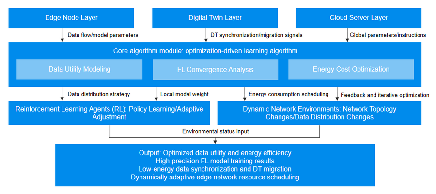 在能源成本方面,微云全息(NASDAQ:HOLO)的研究涵盖了FL模型训练、数据同步以及数字孪生迁移的多个环节。FL模型训练需要边缘设备执行本地计算并定期与中心服务器同步参数,这会产生显著的计算与通信开销。数据同步涉及边缘节点与数字孪生模型之间的实时数据交互,而数字孪生迁移则需要在不同边缘节点间动态调整模型位置,以适应网络拓扑的变化。优化框架通过联合建模这些过程,实现了能源效率的最大化。