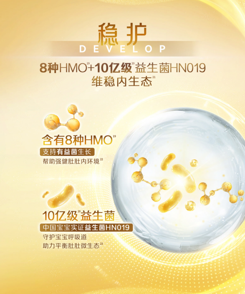 长效维稳方面,皇家美素佳儿的8种HMO与10亿级益生菌协同发力,为宝宝带来持续守护。8种HMO就像有益菌的“专属营养餐”,能适配宝宝肠道不同阶段的菌群需求,促进有益菌定植增殖,帮宝宝建立强健的肠道内环境,从内到外夯实体质基础。而经过中国宝宝实证的10亿益生菌,还能守护宝宝呼吸道健康,打破换季生病魔咒,让宝宝外出探索更有底气。