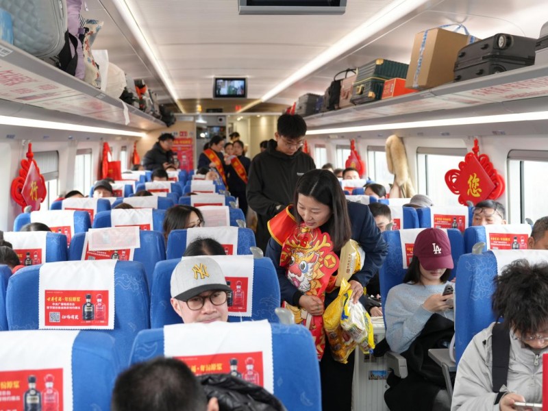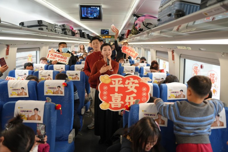 下午1时09分,满载乡情的专列准时启程。列车开行后,车厢内开展了丰富的文化互动活动。黄梅戏表演、有奖年俗互动、邮政知识问答等丰富多彩的活动让归途充满温馨。“这是我第一次坐上返乡专列,感觉特别不一样。从免费车票到车上精心准备的活动,每一样都让我觉得,家乡一直在惦记着我们,心里特别暖。”返乡人员程女士说道。