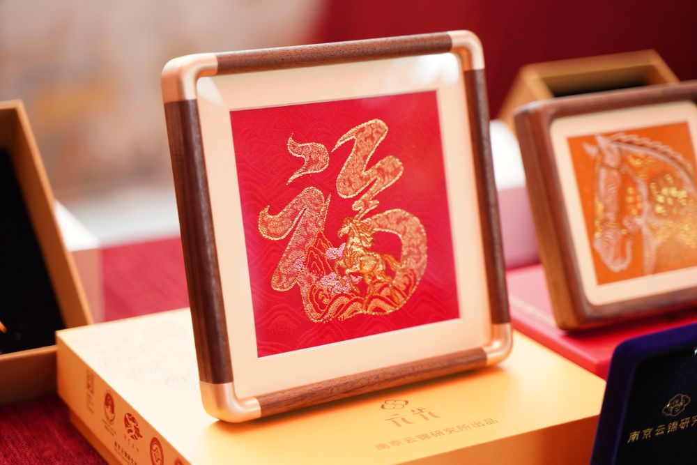 在这里,南京文化符号展成为最吸睛的存在:福马灯、鱼龙灯、荷花灯等传统形制花灯流光溢彩;“福”字挂画、小香包等云锦、绒花制作工艺品琳琅满目。驻足体验的嘉宾,在专业人员指导下拿起拓印工具与仿古城墙砖坯,亲手拓印出明城墙砖铭文,将这份“可触摸的历史”作为新春伴手礼珍藏。