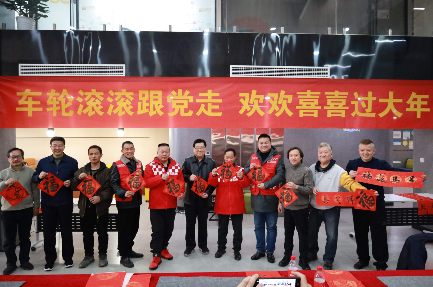 2月12日下午,南京市雨花台区运满满公司内暖意融融、年味浓浓。由江苏省交通运输厅联合民进江苏省委会共同主办的“车轮滚滚跟党走、欢欢喜喜过大年”迎新春活动在运满满“司机之家”温情举行。活动特邀民进江苏省委会开明书画院多位知名书法家现场挥毫泼墨,为30余名一线货车司机送上新春祝福和定制春联,以文化暖流传递党和政府对广大货运从业者的深切关怀。