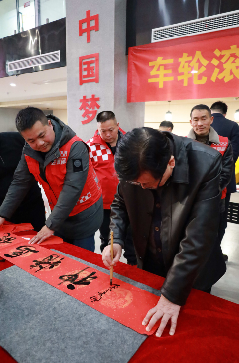 “常年在路上跑,很少有机会参与这样的文化活动。今天不仅收到了书法家亲手写的春联,还感受到了来自党和政府以及平台的关心,心里特别温暖!”一位接过春联的货车司机激动地说。
