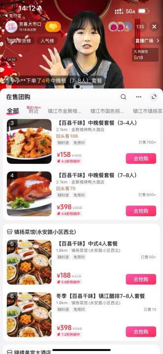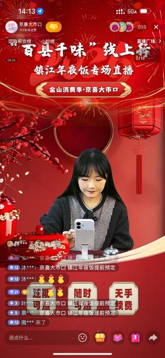 线下热闹非凡,线上同样精彩纷呈。活动同步推出 “百县千味”线上行镇江年夜饭专场直播,汇聚锦绣皇宫、观海楼、国色丽致酒店、镇扬菜馆、金聚楼等本地餐饮名店,自2月6日至8日连续四天推介特色年夜饭套餐。直播累计实现销售额18万元,成交订单352笔,总曝光量突破40万人次,商品转化率稳定在5%-10%,线上消费势头强劲,成为市级新春促消费成果展示的重要一环。