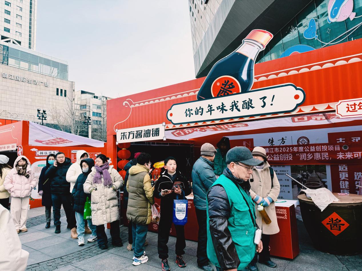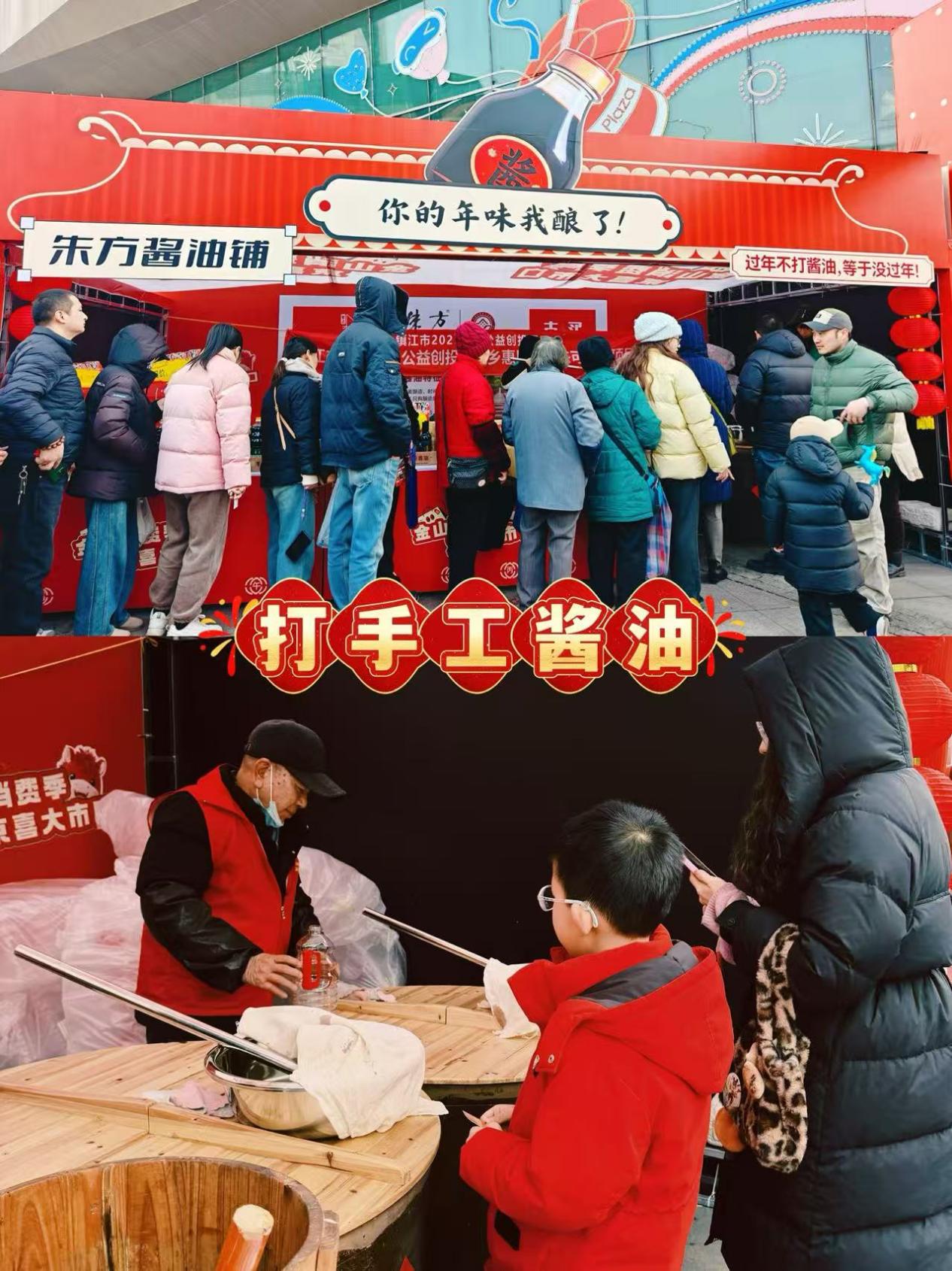 市集首推 “你的年味我‘酿’了!”民俗打酱油活动。每天下午两点,准时开启免费派送,每日100斤酱油承载着传统酱园的醇厚滋味与新年祝福。活动三天,现场早早排起长龙,市民朋友们携瓶带罐,欢声笑语中再现往日集体“打酱油”的热闹景象,浓郁酱香里飘散出满满怀旧情怀与人情温度,成为市集最具烟火气的风景线。