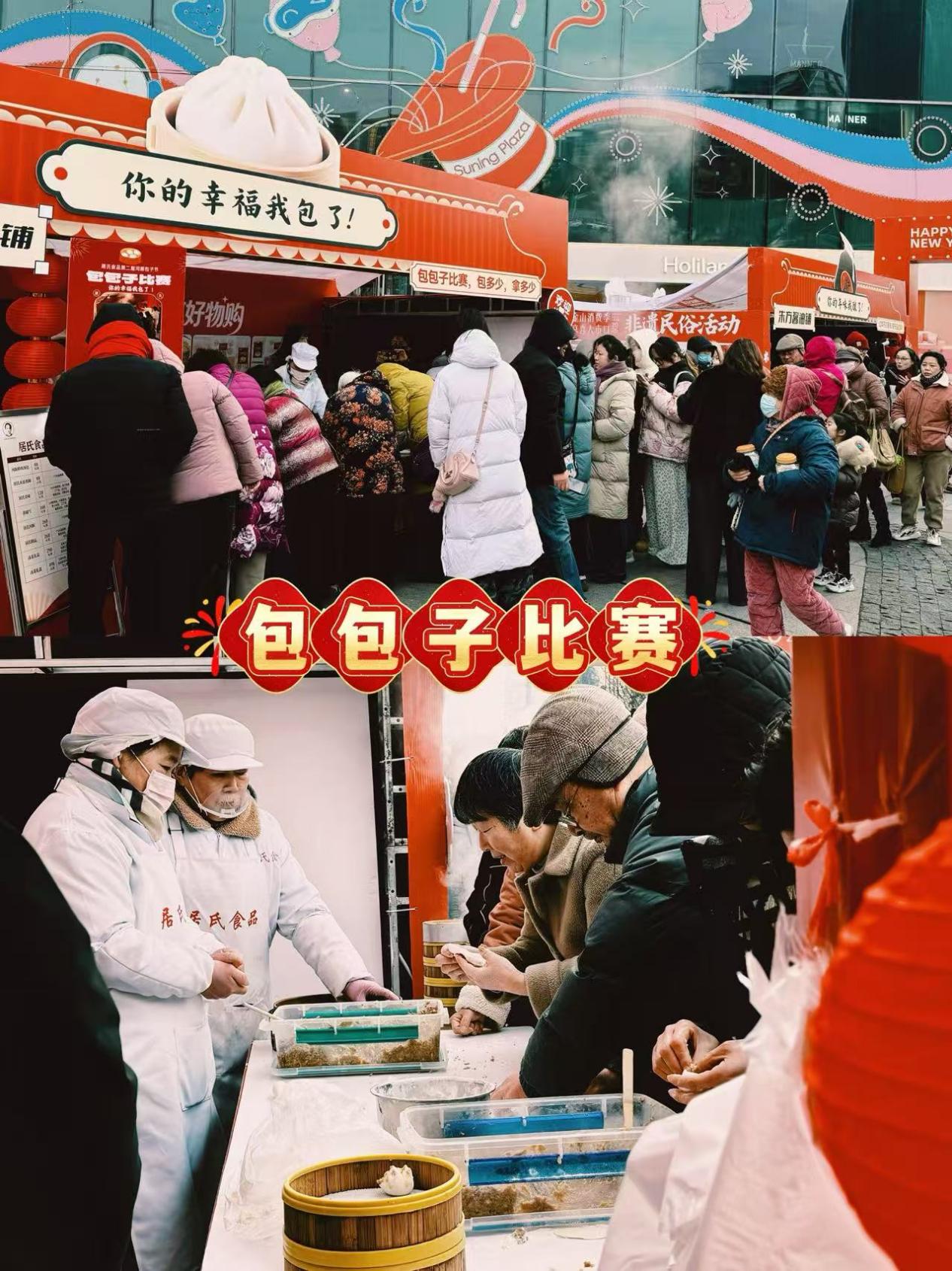 另一大高潮当属 “你的幸福我‘包’了!”非遗居大师包河豚包子大赛。每天下午三点至四点,比赛如火如荼。两人一组,限时8分钟,“包多少拿多少”的赛制吸引众多家庭、好友组队挑战。现场气氛紧张热烈,巧手翻飞间,形态可爱的河豚包子不断诞生,围观群众喝彩连连。这场兼具技巧性与趣味性的非遗体验,让传统手艺在竞技中焕发新活力,将“年年有余”的美好寓意包进每一份收获里。