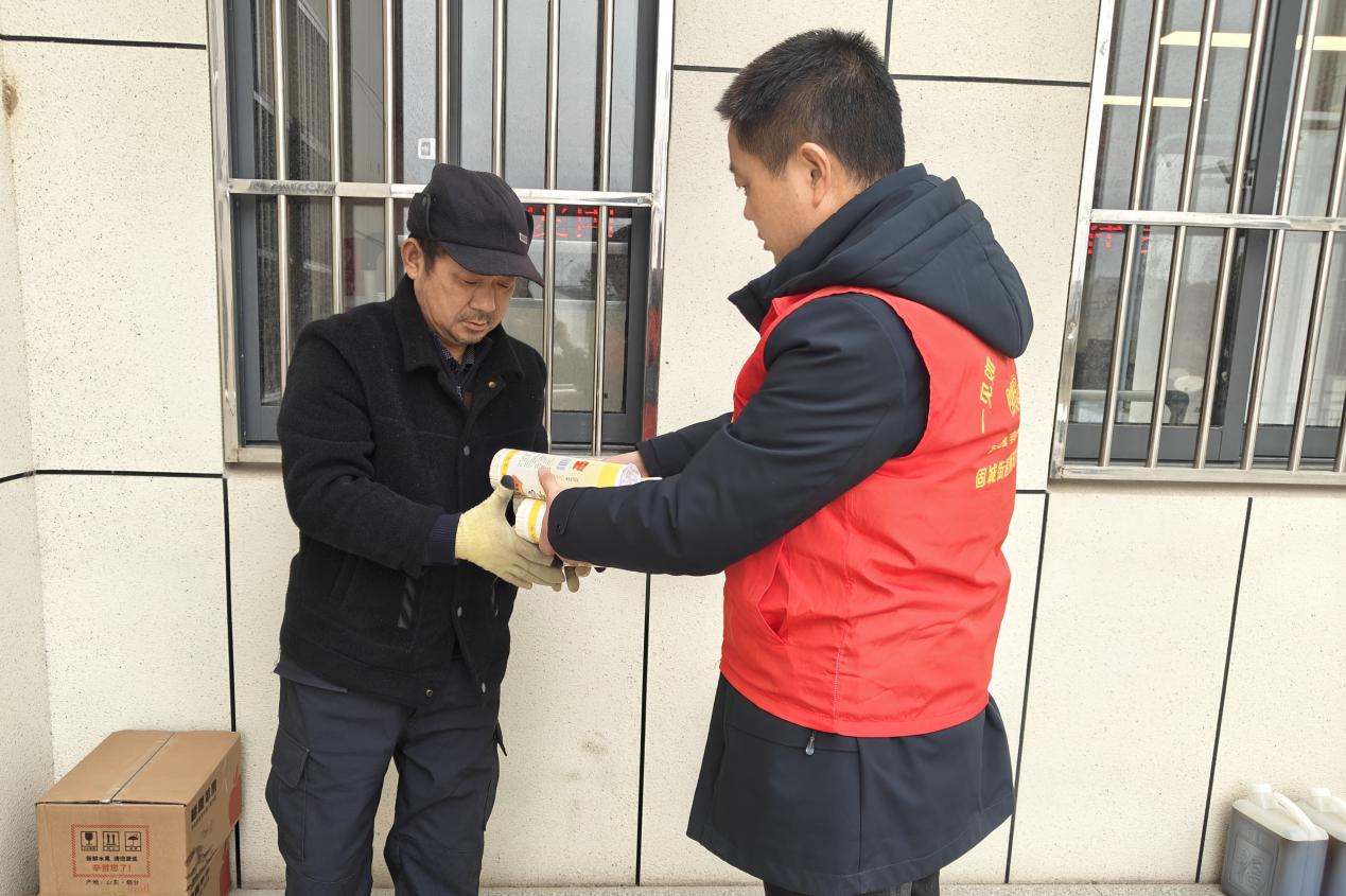 在禅林山村村委会院内,慰问品早已准备就绪。刚从各作业点位赶来的15名保洁员陆续收到了一份份饱含心意的礼包,其中包含大米、食用油、苹果、挂面等实用物品,寓意平安、顺利与丰收。工作人员在发放物资时,不忘细心叮嘱大家注意防寒保暖和作业安全。