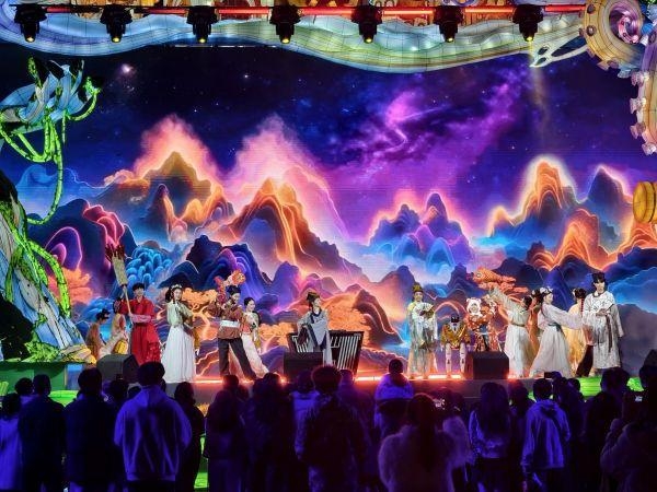 多点位演艺、市集与互动体验的叠加设置,让游客在观灯之外“有得看、有得玩、有得逛”,不再匆匆走马观花,而是愿意放慢脚步、深度游览整个园区。