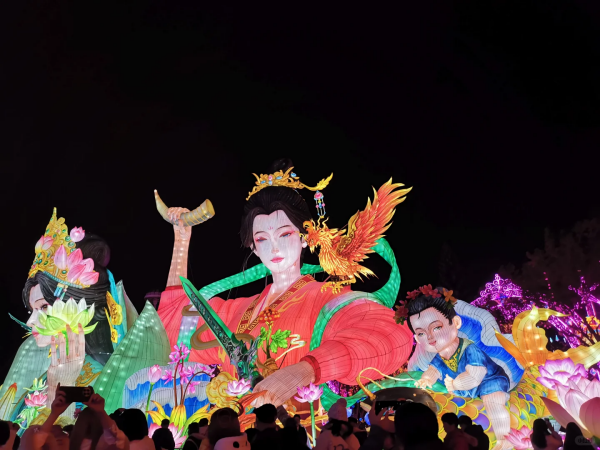 在灯组创作之外,本届灯会进一步强化“沉浸式体验”属性,引入多点位NPC互动机制。结合灯组主题与游览动线,园区设置多位情景化NPC角色,参与巡游、互动引导与趣味演绎,游客可在观灯过程中与NPC进行合影、互动打卡、任务式体验,增强游览参与感与故事代入感,实现“边走、边看、边互动”的夜游体验升级