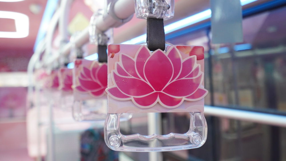 璀璨花灯主题线以国家级非物质文化遗产“秦淮灯彩”为设计主线。车头装饰荷花灯造型,车厢内部布设荷花灯纹图案,拉手、座椅等设施均融入灯彩视觉元素。南京公交方面介绍,该主题旨在将夫子庙“桨声灯影”的意象延伸至城市公共交通空间,营造“张灯祈福”“和和美美”的乘车氛围。
