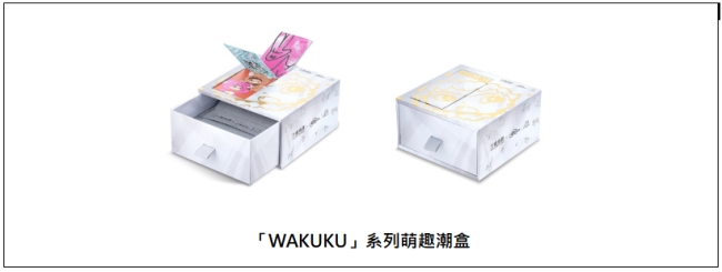 凡选购WAKUKU系列任意首饰,可获赠六福珠宝×WAKUKU专属联名礼盒一份,随即解锁这场黄金时尚Party的惊喜彩蛋:抽拉式机关轻巧一推,礼盒如魔法宝匣般展开,潮玩卡片随之翻动,长着一字眉、大圆眼和小虎牙的WAKUKU跃然眼前,萌酷值拉满!翻页不止,乐趣不停,精美礼盒化身快乐魔盒,为每一件首饰的购入注入满满仪式感,愿玩趣与好运持续加载,希望生活处处绽放“金”喜火花。这个在明星街拍里频繁出镜的IP,正等待着被你认领,一起将普通日常装扮升级,加入这场潮酷派对!