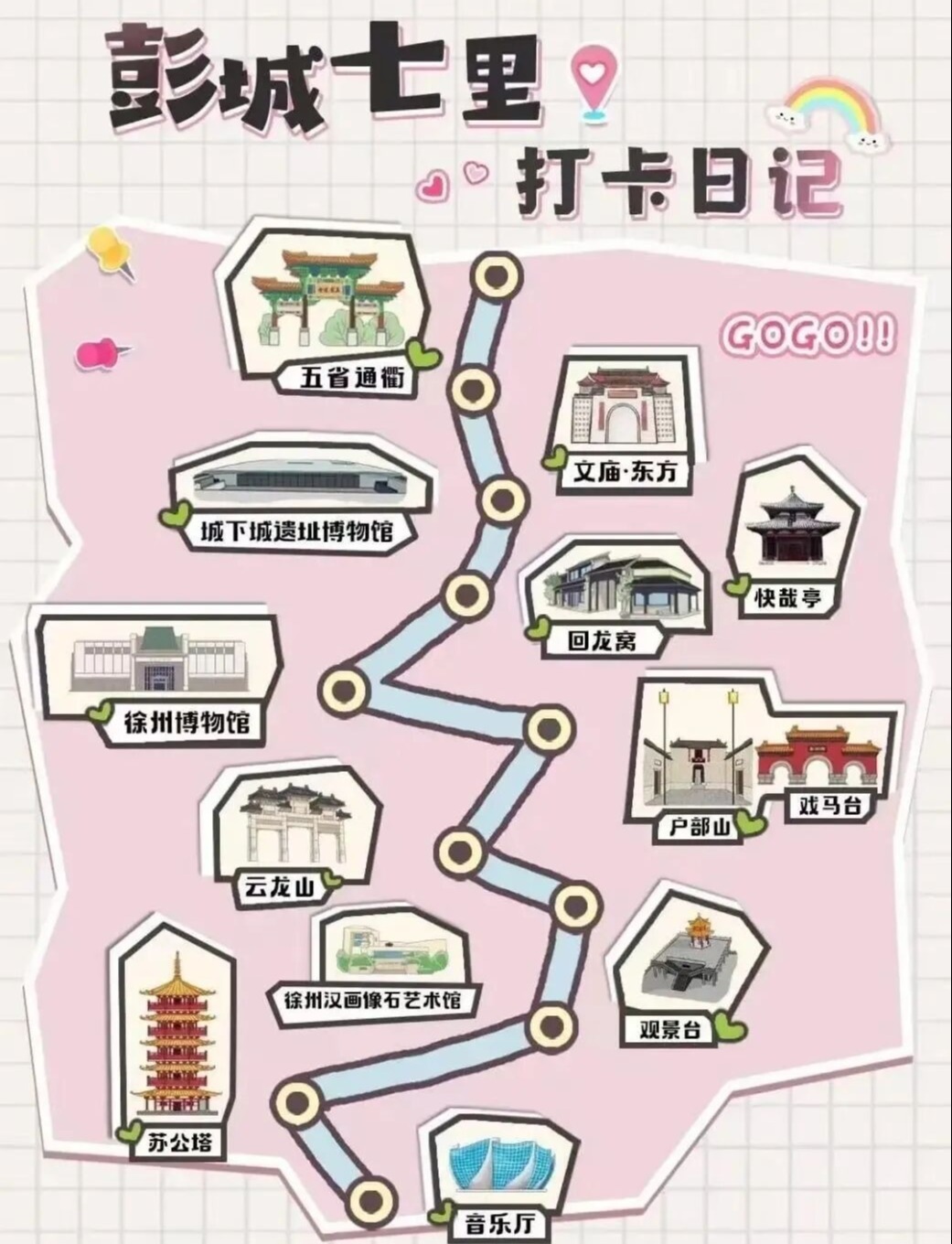 深入了解彭城七里的历史背景、民俗文化,提升观察、动手与简单写作能力,增强文化认同感。必做作业(2选1,可独立或亲子协作):1.“建筑小研究员”——古建密码探寻,走进彭城七里打卡点,观察至少3处特色建筑,记录建筑的名称、外观特点(如屋顶形状、门窗图案、材质),用文字或画图的形式整理成“古建观察笔记”(至少包含3个观察点,每点配文字说明或插图)。延伸任务:向家长或街区工作人员请教1个关于建筑的小知识(如“这个门头的图案有什么寓意”),记录在笔记末尾。2.“民俗小传人”——传统技艺体验,参与彭城七里的传统民俗体验活动(如写春联、剪窗花、做糖画等),亲手完成一件民俗作品,拍摄作品制作过程的3张照片(开头、中间、成品),并撰写一段150字左右的体验感受(包含“怎么做”“遇到什么困难”“收获是什么”)。